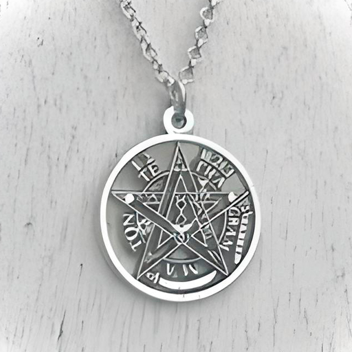 Talismán artesano de acero inoxidable, medalla calada tetragrámaton. Talismán amuleto calado de acero inoxidable de 2.7 cm de diámetro tetragrámaton, con cadena de acero inoxidable, gran protector. Talismán artesano elaborado manualmente.