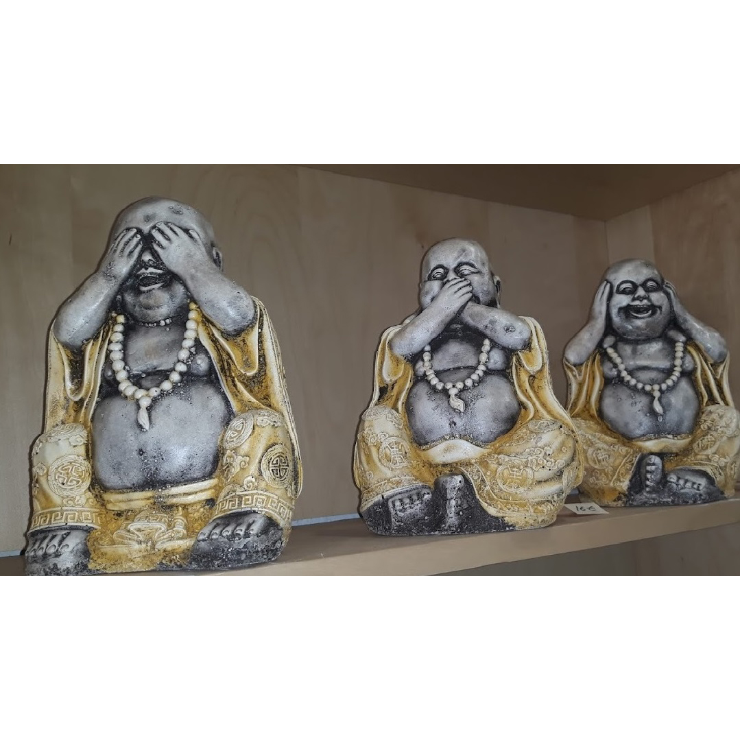 Ver, oir y callar, conjunto de tres budas de piedras de 2.5kg de 18cm de alto pintada fabricada y pintada a mano, elaboración nacional solicita amarillo