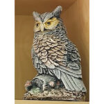 Buho pequeño de piedra artificial de 0.500kg de 12cm de alto pintada fabricada y pintada a mano, elaboración nacional