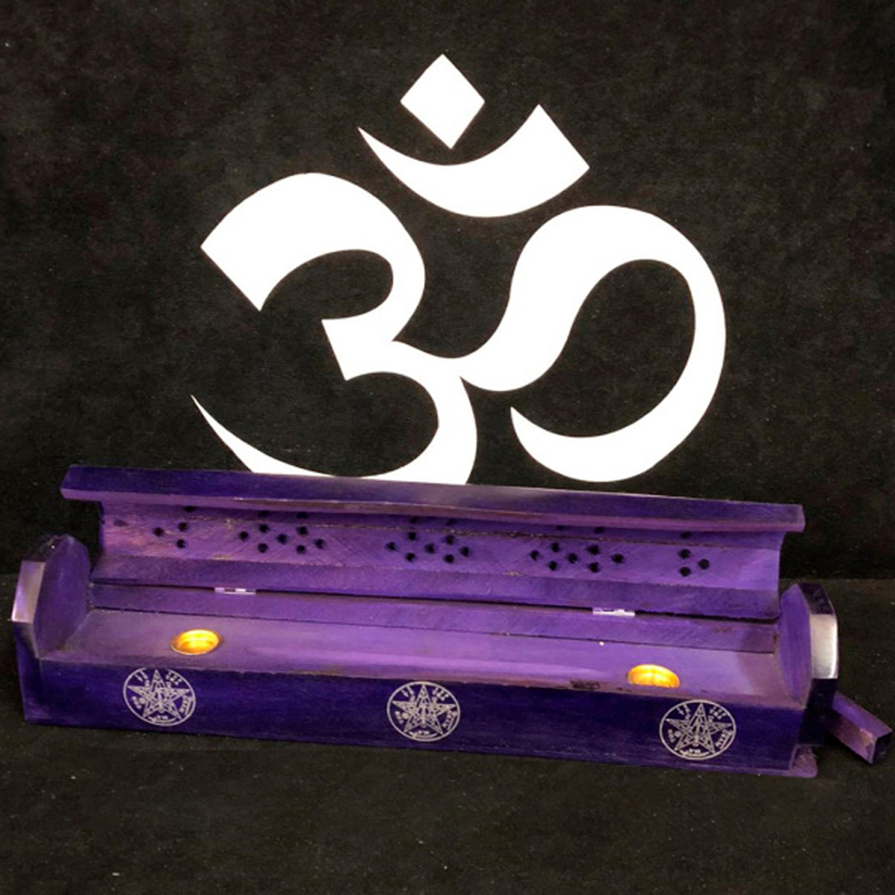 Incensario madera morado recalado tetragramatom 30 cm