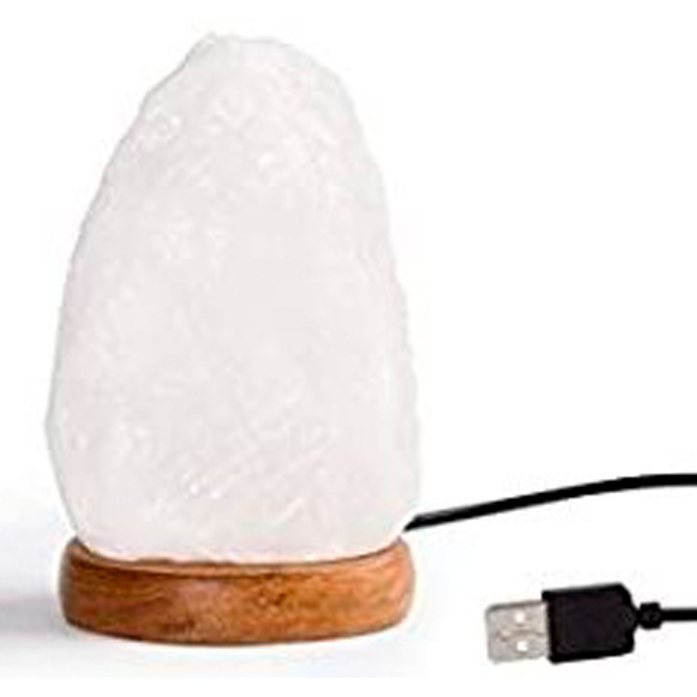 Nuestra Lámpara de Sal del Himalaya USB, de aproximadamente 12 cm de altura y base de madera, emite una luz de cromoterapia que cambia suavemente de tono en colores azul, rojo, amarillo y verde. Esta lámpara de sal es conocida por sus propiedades positivas contra alergias y problemas respiratorios, enriqueciendo el ambiente con iones negativos. Aporta una atmósfera sana y pura a tu hogar, tienda o despacho.